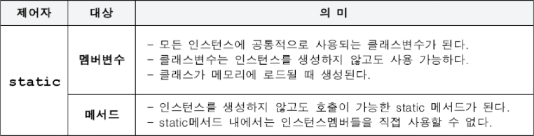 멤버변수, 메서드, 초기화 블럭에 static이 사용될 수 있습니다.
